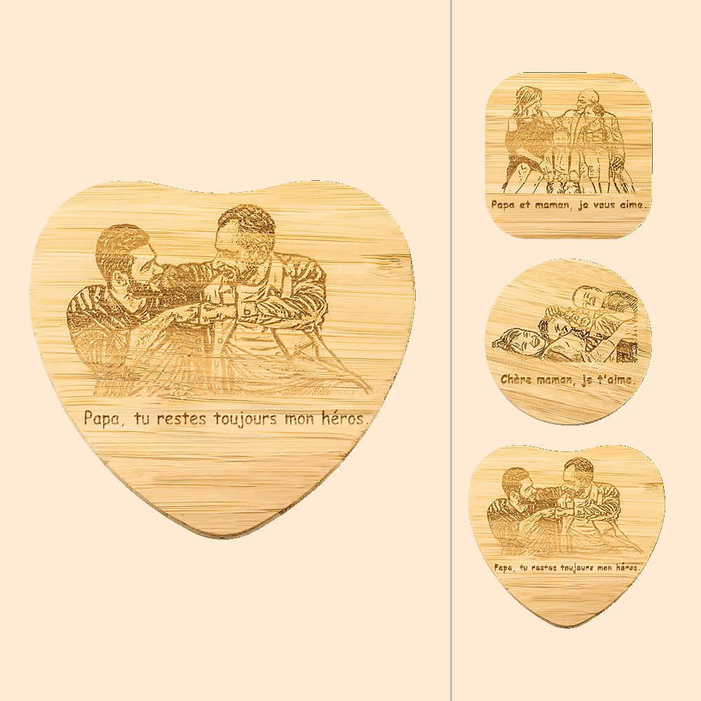 Chargeur Sans Fil en Bois Personnalisé avec Photo et Texte Gravés ou Imprimés Cadeau Anniversaire pour Famille Ami