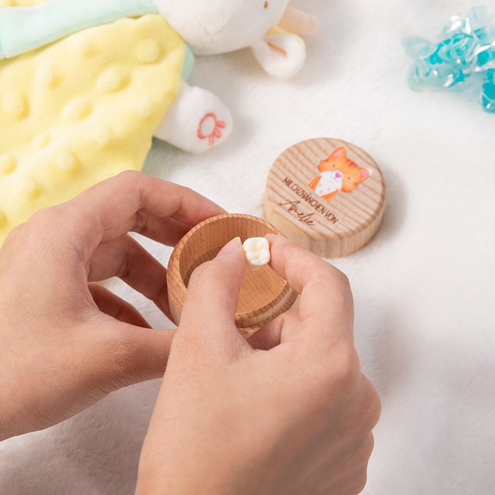 Chaque boîte à dents est personnalisée avec le nom de l'enfant gravé dessus, ce qui en fait un objet unique et spécial. Cette personnalisation ajoute une touche personnelle et fait de la boîte un souvenir précieux propre à chaque enfant. Le nom gravé transforme la boîte d'un simple contenant en un souvenir précieux de l'enfance.