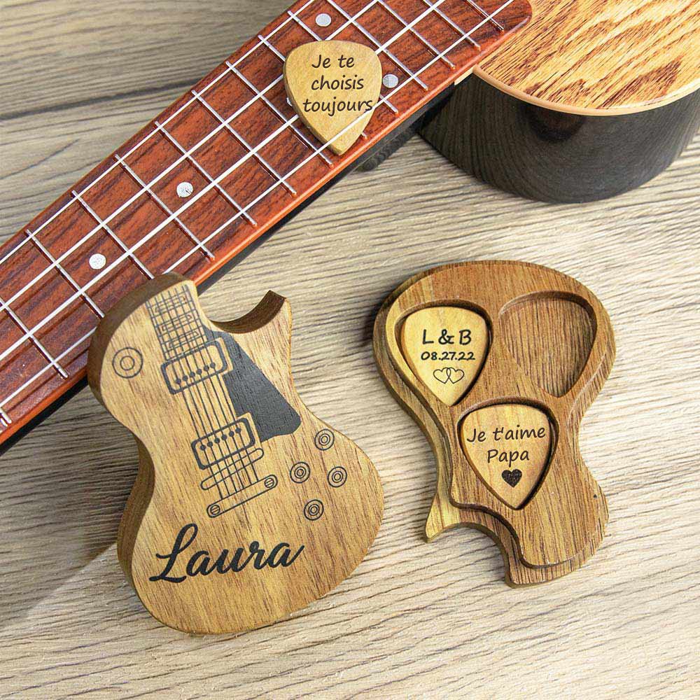Ces picks personnalisés constituent un cadeau idéal pour les guitaristes du monde entier ! Un article amusant et fonctionnel pour tout amateur de musique ! Vous pouvez choisir de personnaliser le style de la photo ou le style du texte. Veillez à télécharger des photos de haute qualité.