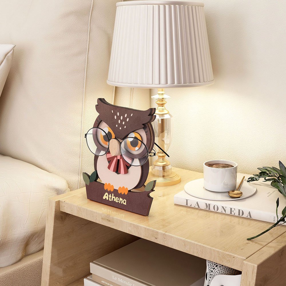 Les hiboux représentent la sagesse, la connaissance et le développement intuitif. Ce joli hibou est conçu pour équilibrer parfaitement vos lunettes. Vous pouvez laisser vos lunettes ouvertes et poser les montures sur la surface, ou plier les branches et les poser sur les supports à l'arrière. -