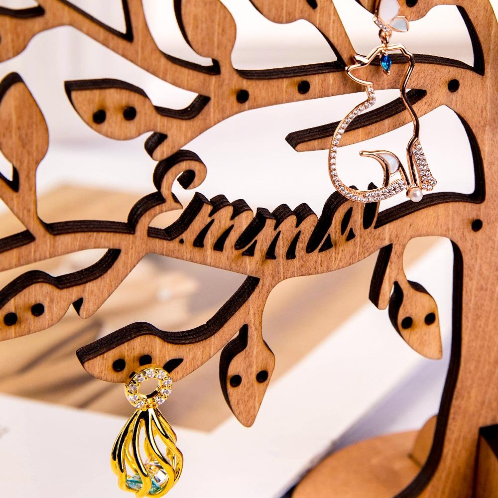 • La boîte de rangement de bijoux en forme d'arbre en bois synthétique de haute qualité avec un nom unique peut être personnalisée pour vous. Avez le choix entre deux tailles : 10,6*9,8*0,2" et 9,1*8,3*0,2", feuilles pour petites boucles d'oreilles et branches pour le stockage Des accessoires plus grands tels que des bracelets, des colliers, des créoles, des sangles et des bracelets.