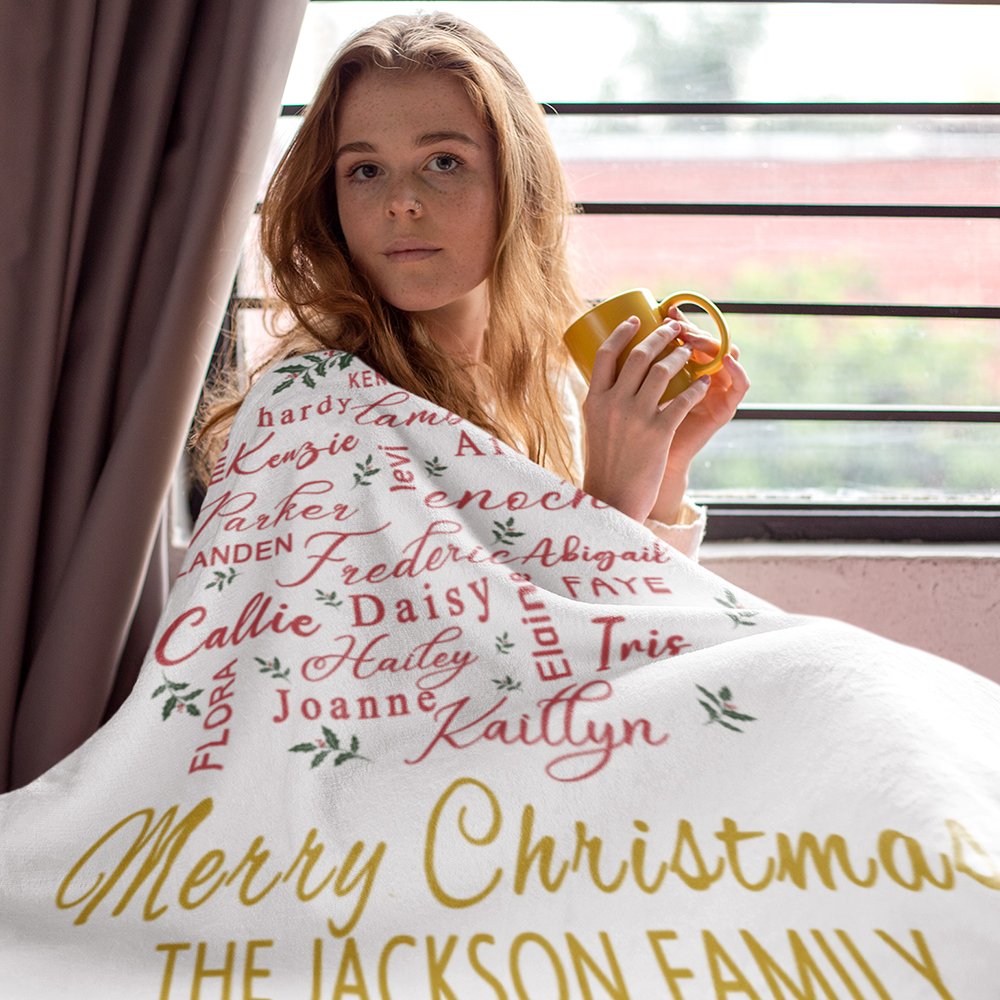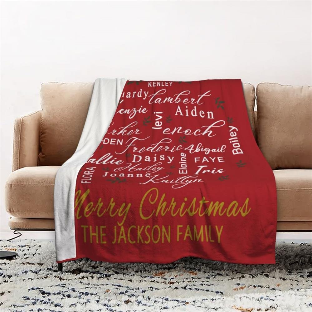 Célébrez l'amour de votre famille et les moments qui vous sont chers avec cette couverture en forme de nuage de mots. Cette couverture douce et confortable peut être personnalisée avec un nom, une année et un texte spécial, ce qui en fait un cadeau de Noël exceptionnel pour les familles ou les enfants. Il s'agit d'un cadeau sincère qui allie chaleur et lien personnel, et qui deviendra un souvenir précieux pendant les fêtes de fin d'année.