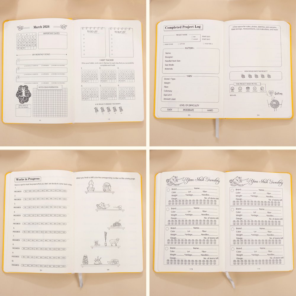 Les outils de planification 2026 intégrés (tableau de vision, calendrier, plan mensuel), le système de suivi des projets (journal des projets en cours/terminés, suivi des objectifs), le module de gestion du matériel (inventaire des fils, liste des fournitures, liste des souhaits) et la page de bilan annuel et d'enregistrement créatif, aident les tricoteuses à gérer systématiquement l'avancement des projets, les réserves de matériel et l'inspiration créative, à dire adieu au chaos et à contrôler facilement chaque étape de la conception à l'achèvement.