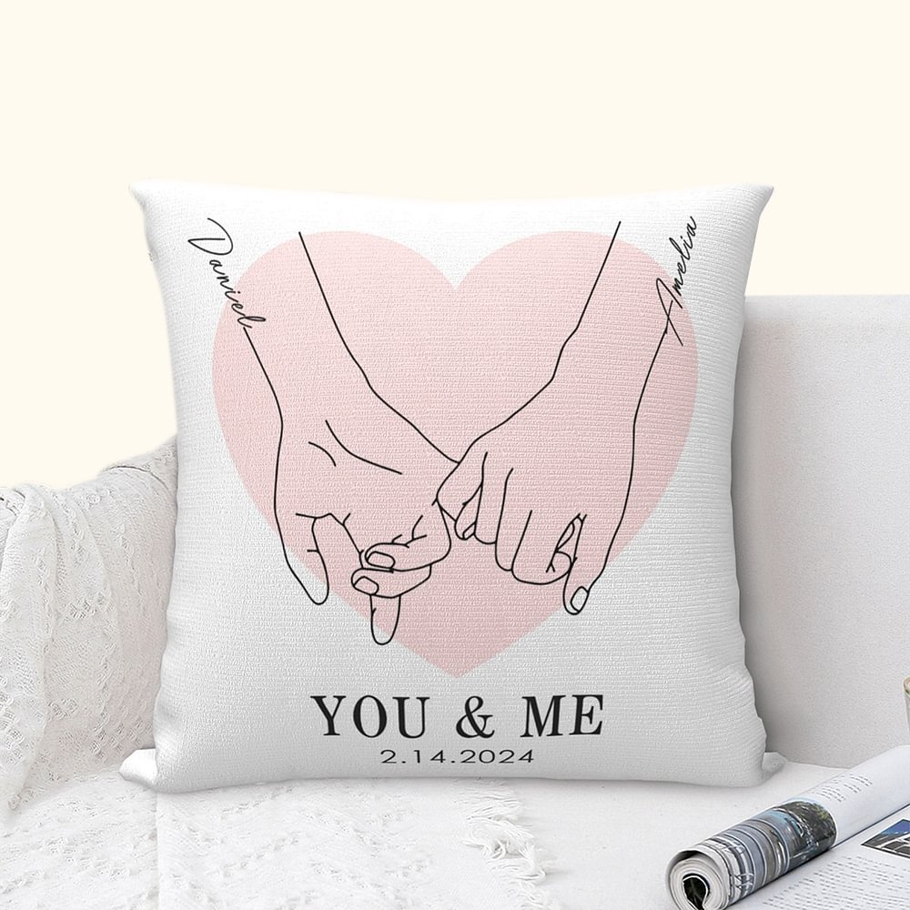 Coussin personnalisé You & Me Holding Hands Line Art Cushion Throw Pillow Cover Valentine's Day Anniversary Gift for Couple