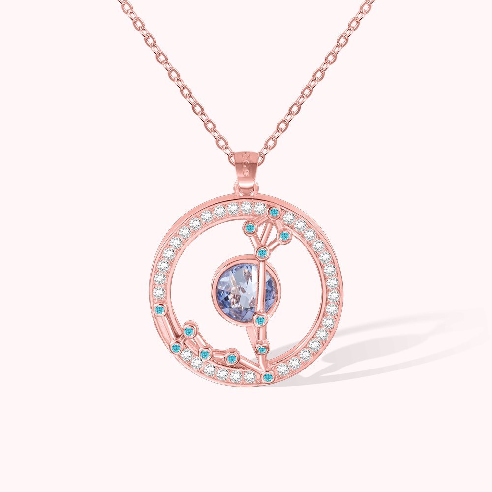 Notre collier est fabriqué avec des cristaux de pierres de naissance de première qualité. Cet éblouissant pendentif du zodiaque présente un design d'horoscope unique avec une structure 3D - un anneau plaqué or rose rempli de zirconium, attaché à une ligne d'étoiles du zodiaque sur le dessus, créant une complexité structurelle intense qui montre beaucoup de personnalités. L'étoile qui vous appartient sera toujours avec vous lorsque vous porterez ce superbe collier !