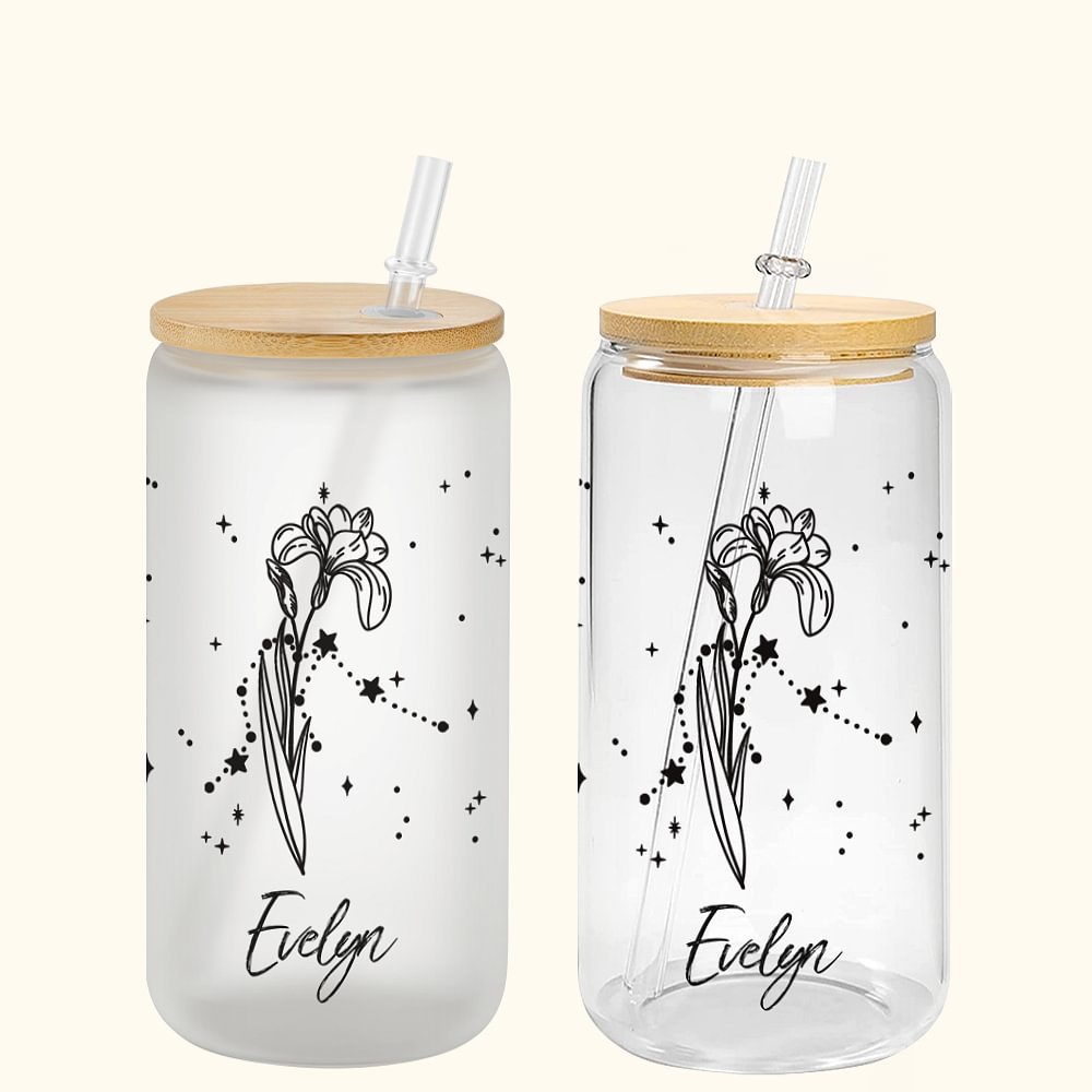 Le mois de naissance de chaque personne a sa propre fleur d'anniversaire, chacune ayant une signification particulière. Nos gobelets en verre s'en inspirent et intègrent un motif de constellation unique et captivant, avec de simples lignes noires soulignant la constellation et les styles floraux, entrelacés pour hypnotiser et créer une expérience visuelle captivante.
