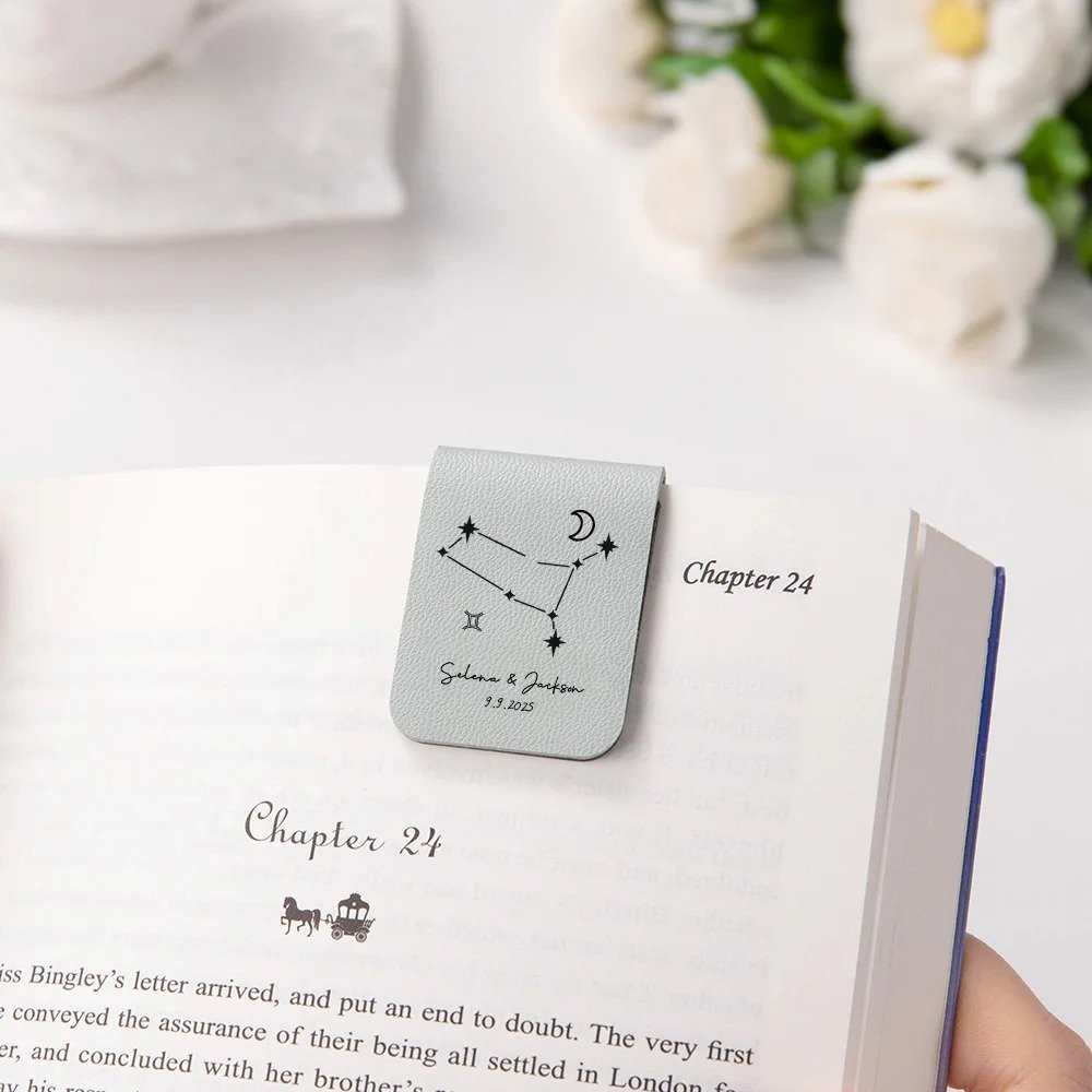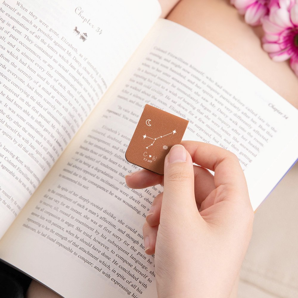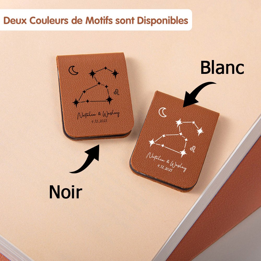 Ce marque-page magnétique en cuir présente un motif unique de signe du zodiaque, ajoutant une touche personnelle qui reflète l'identité astrologique du destinataire. Personnalisez-le avec son nom, sa date ou ses initiales pour un cadeau spécial.