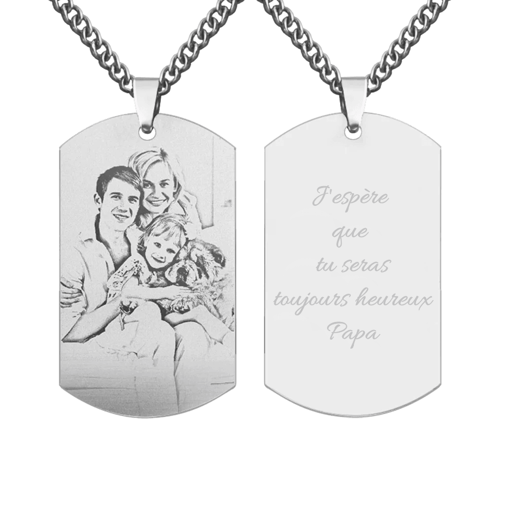 Collier de Plaque Personnalisé avec Photo et Message Gravés Cadeau Anniversaire Fête des Pères Mères pour Famille Parents