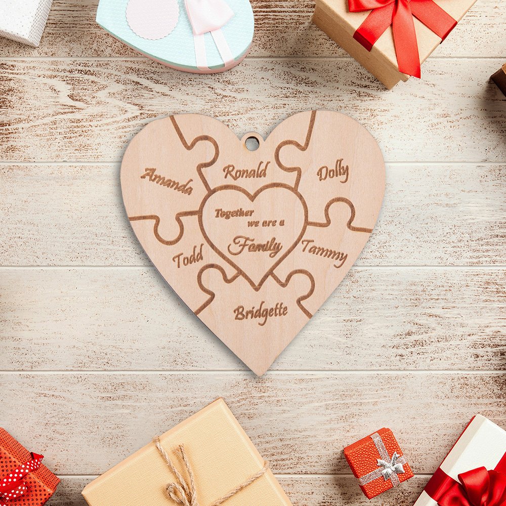 • Conçu pour qu'une famille montrant à tous les membres un ornement de puzzle en bois dans l'arbre de Noël.
